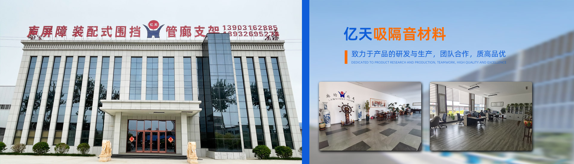 廊坊億天吸隔音材料有限公司于1997年建廠,公司位于河北省廊坊市文安縣興隆宮鎮朱河村工業(yè)區,地處京、津、冀金三角地帶,注冊資金8005萬元。公司一直致力于環(huán)保產品的研發(fā)與生產,主要涉足于公路鐵路噪聲處理、廠房鋼結構、防塵抑塵治理、環(huán)境美化四大領域。主營產品有高速鐵路用···